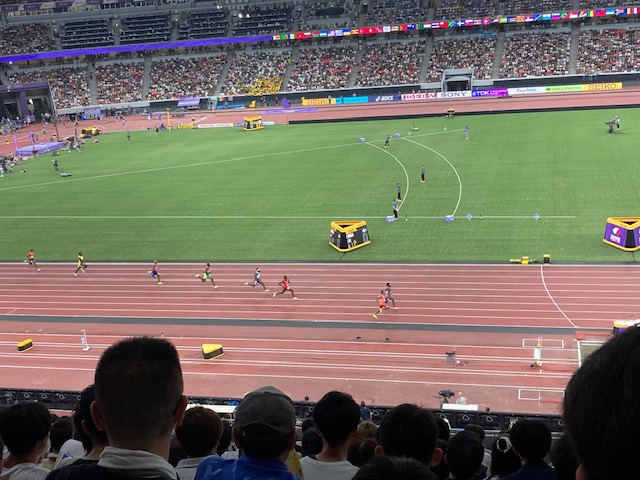 当日は男女100Mの決勝や男子10000M決勝など見どころが多く、満員の国立競技場が感動と興奮に包まれる中、私自身も心が揺さぶられました。