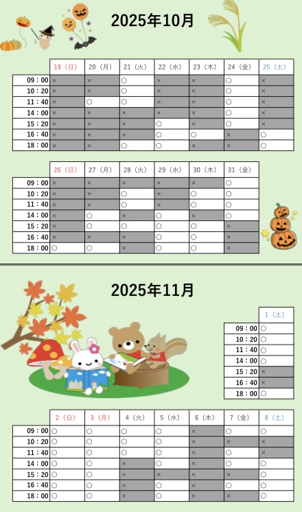 今後の予約状況は下記にて、ご案内させていただきます!ご確認いただけますと幸いです。