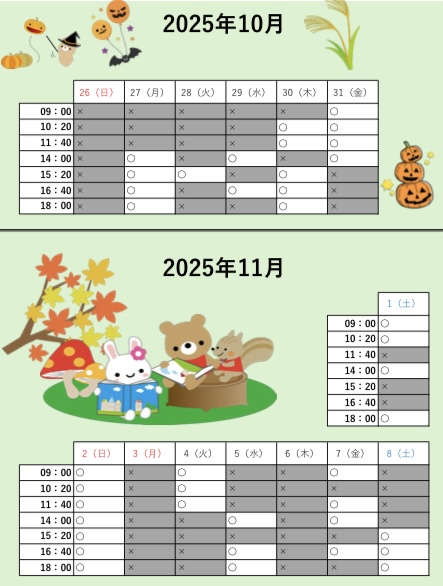 今後の予約状況を下記にて、ご案内させていただきます!ご確認いただけますと幸いです。