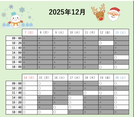 年末は2025年12月31日(水)14時のご予約が最終になります。