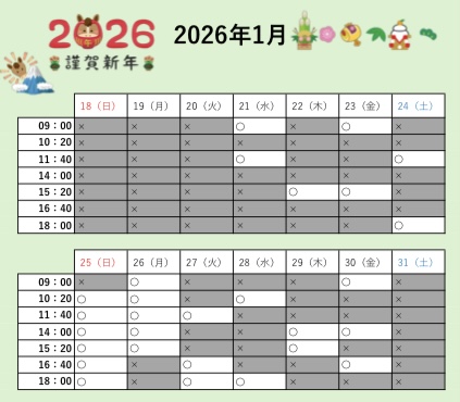 1月20日~1月31日予約空き状況と「急性腰痛」について